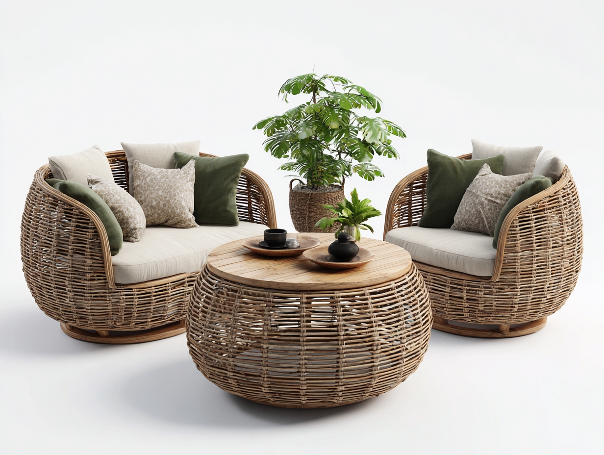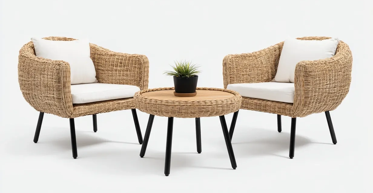 Ensemble table et chaises de jardin 3 pièces 102x90x85 cm - rotin synthétique et bois - beige/naturel - style bohème