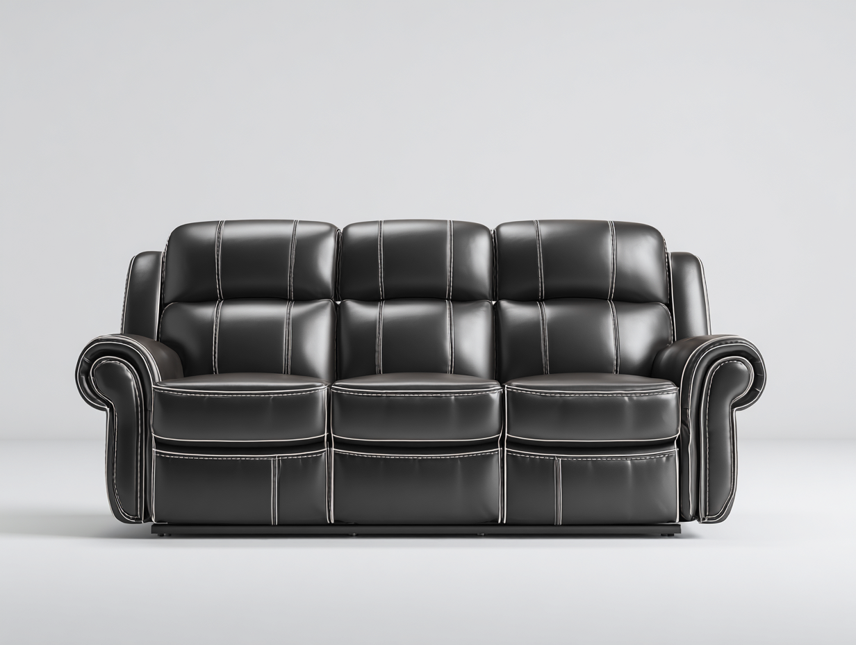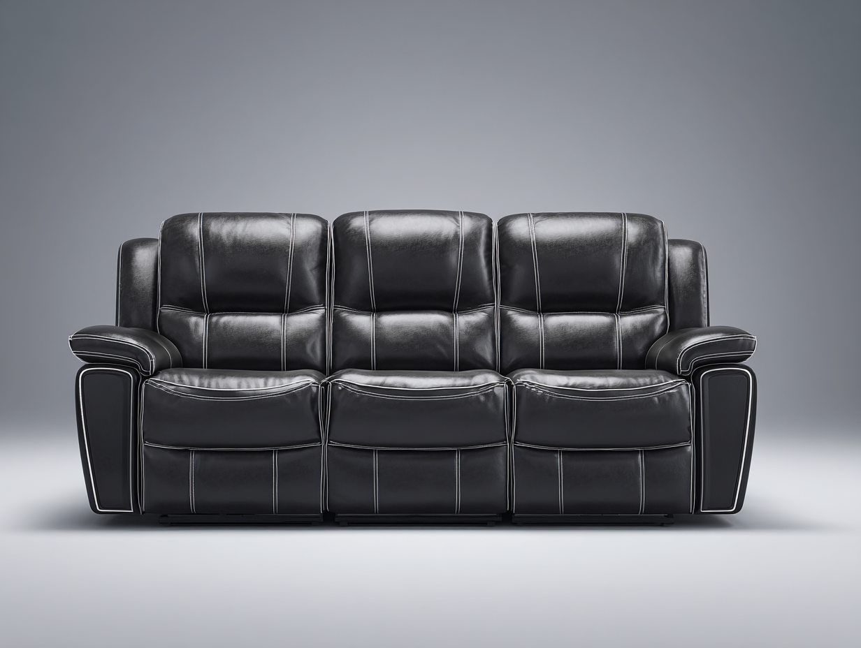 Canapé 3 places relax - cuir synthétique - 225x98x105 cm - noir - design ergonomique