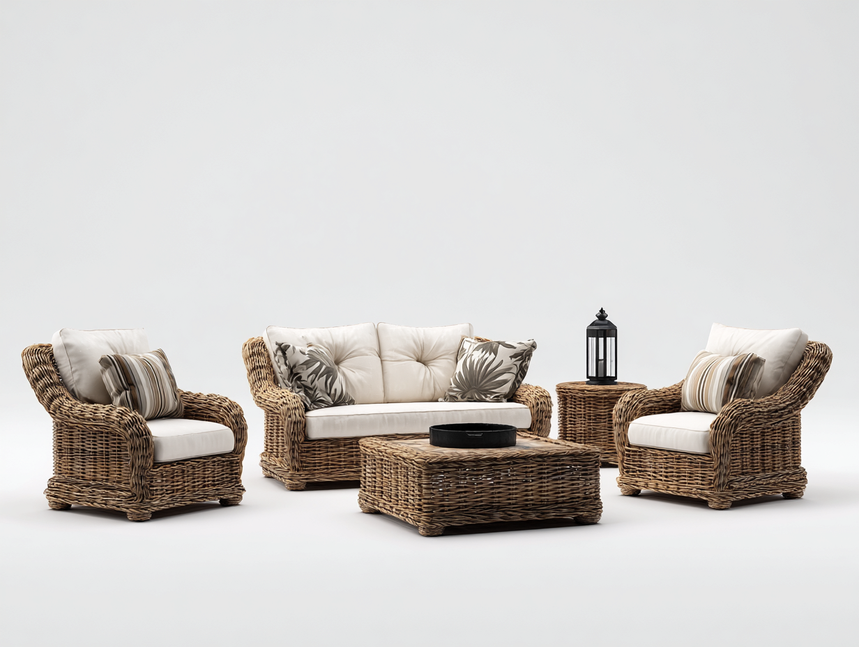 Ensemble de table et chaises d'extérieur - résine tressée et métal - 65x65x78 cm - naturel/noir/blanc - design moderne