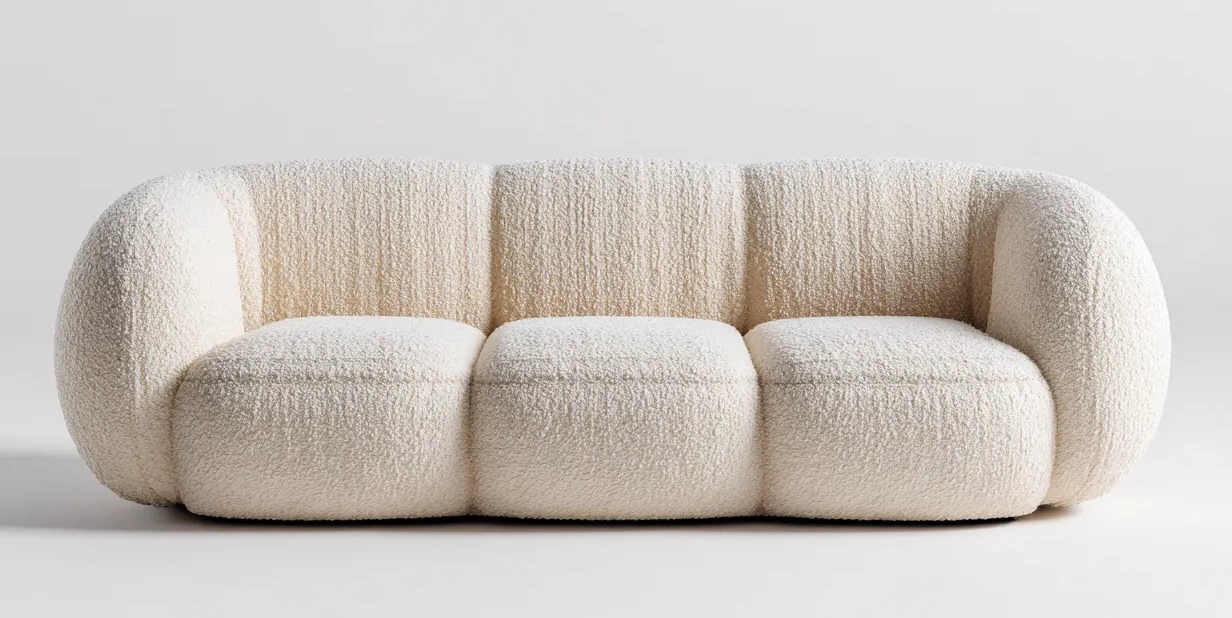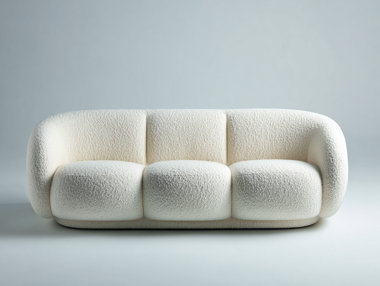 Canapé 3 places 210x95x82 cm - tissu bouclé blanc - style moderne arrondi