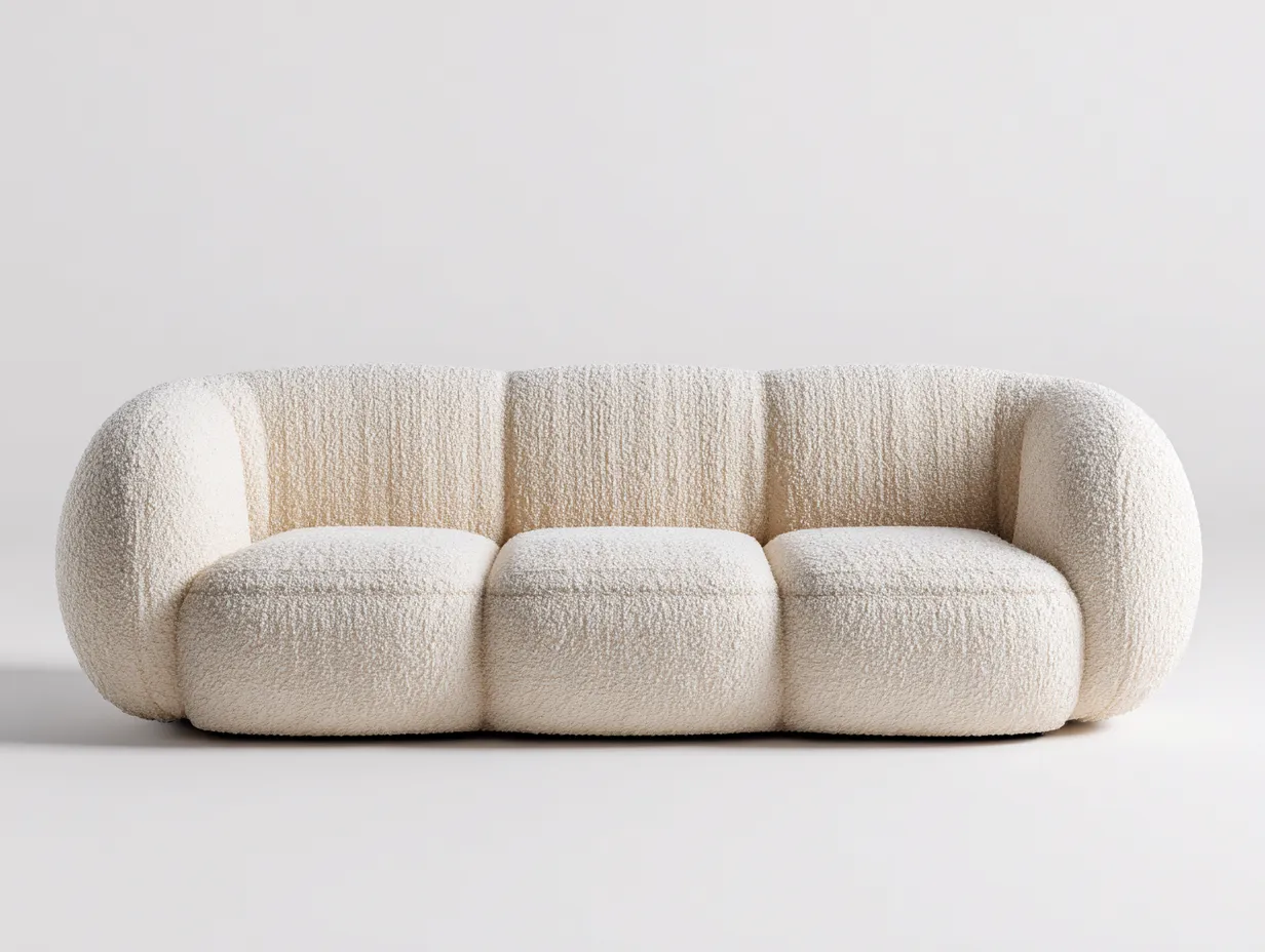 Canapé 3 places 210x95x82 cm - tissu bouclé blanc - style moderne arrondi