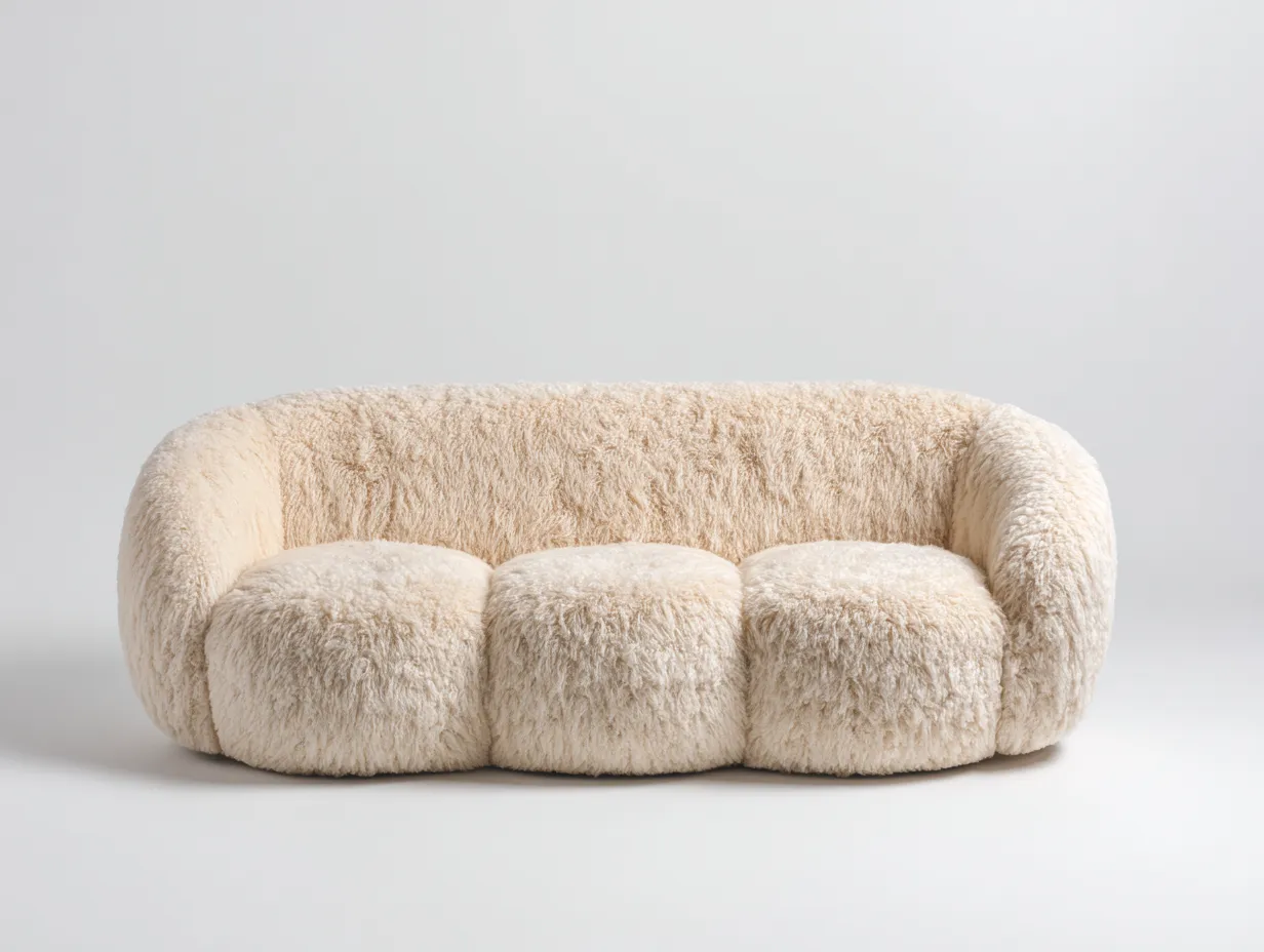 Canapé 3 places 218x103x86 cm - fourrure synthétique beige - style moderne arrondi