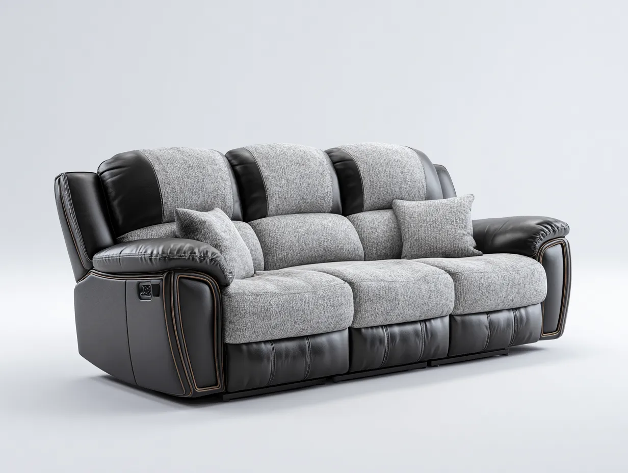 Canapé 3 places relax - tissu et cuir synthétique - 220x98x105 cm - gris/noir - design ergonomique