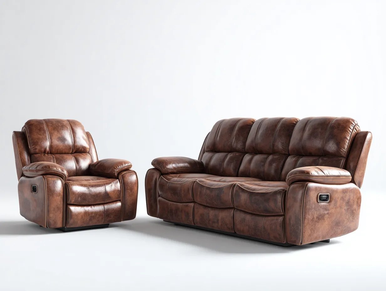Ensemble canapé et fauteuil relax 200x95x100 cm - similicuir - marron - design confortable