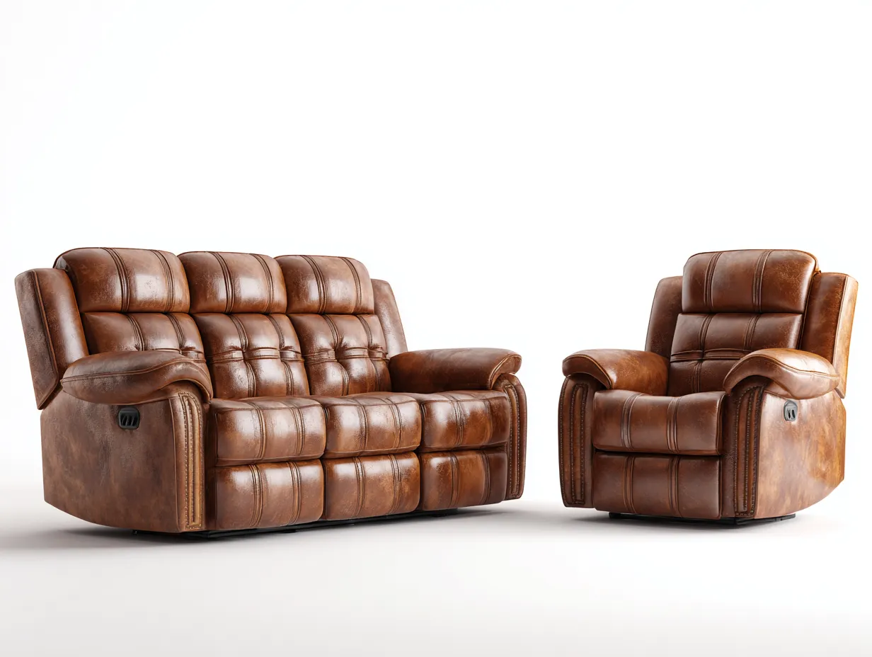 Ensemble canapé et fauteuil relax 202x97x101 cm - cuir véritable brun - style rétro rembourré