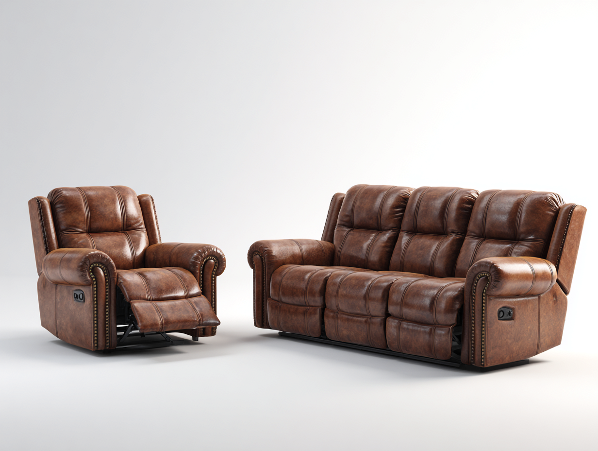 Ensemble canapé et fauteuil relax 210x95x100 cm - cuir véritable brun - design contemporain