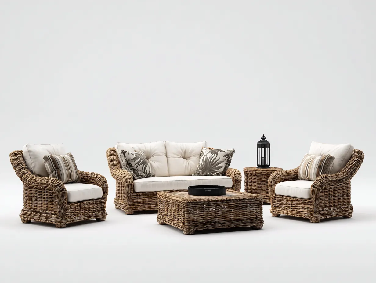Ensemble de salle à manger d'extérieur - résine tressée et bois - 170x90x95 cm - naturel/beige - style moderne