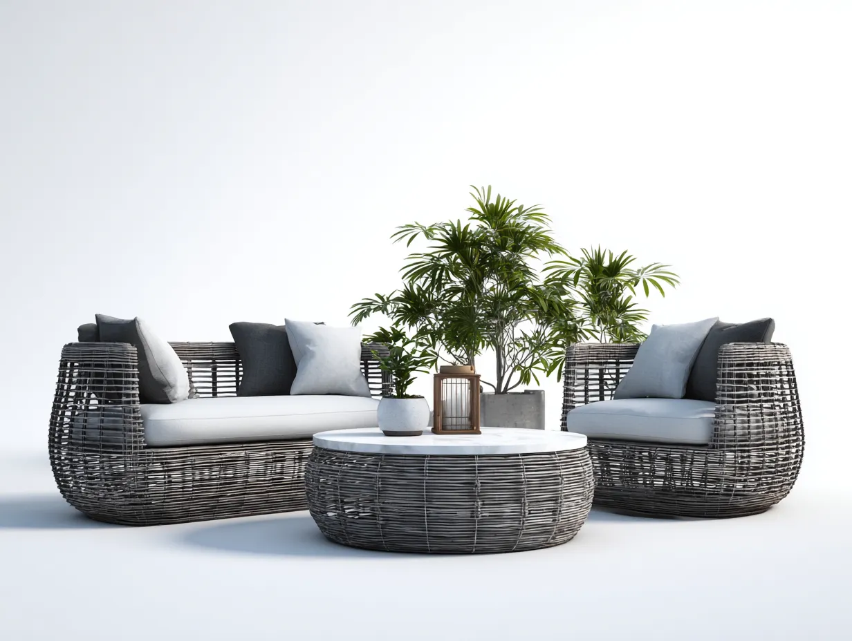 Ensemble de salle à manger d'extérieur - résine tressée/bois - 142x78x85 cm - gris/blanc - style moderne