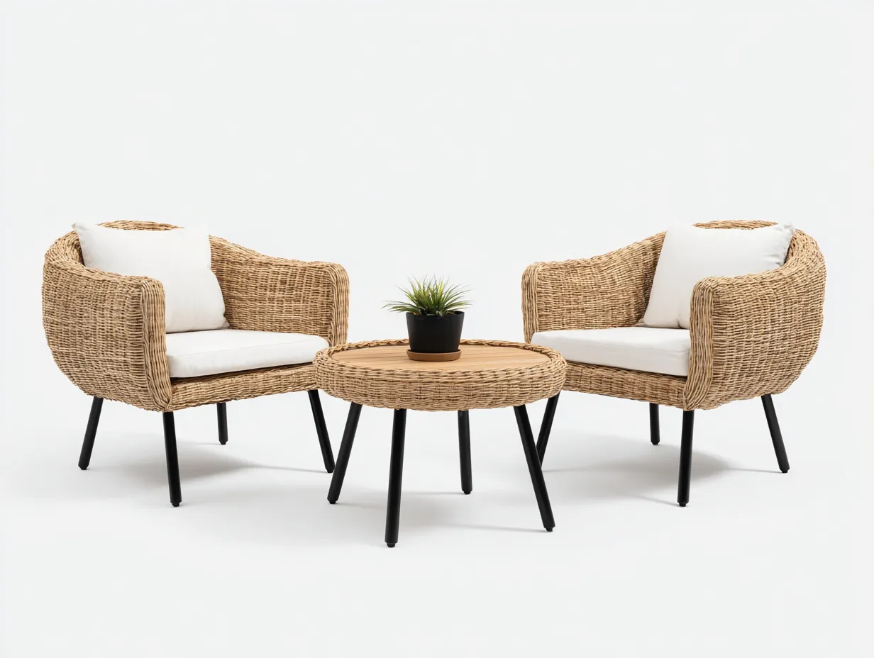 Ensemble de table et chaises d'extérieur - résine tressée et métal - 65x65x78 cm - naturel/noir/blanc - design moderne